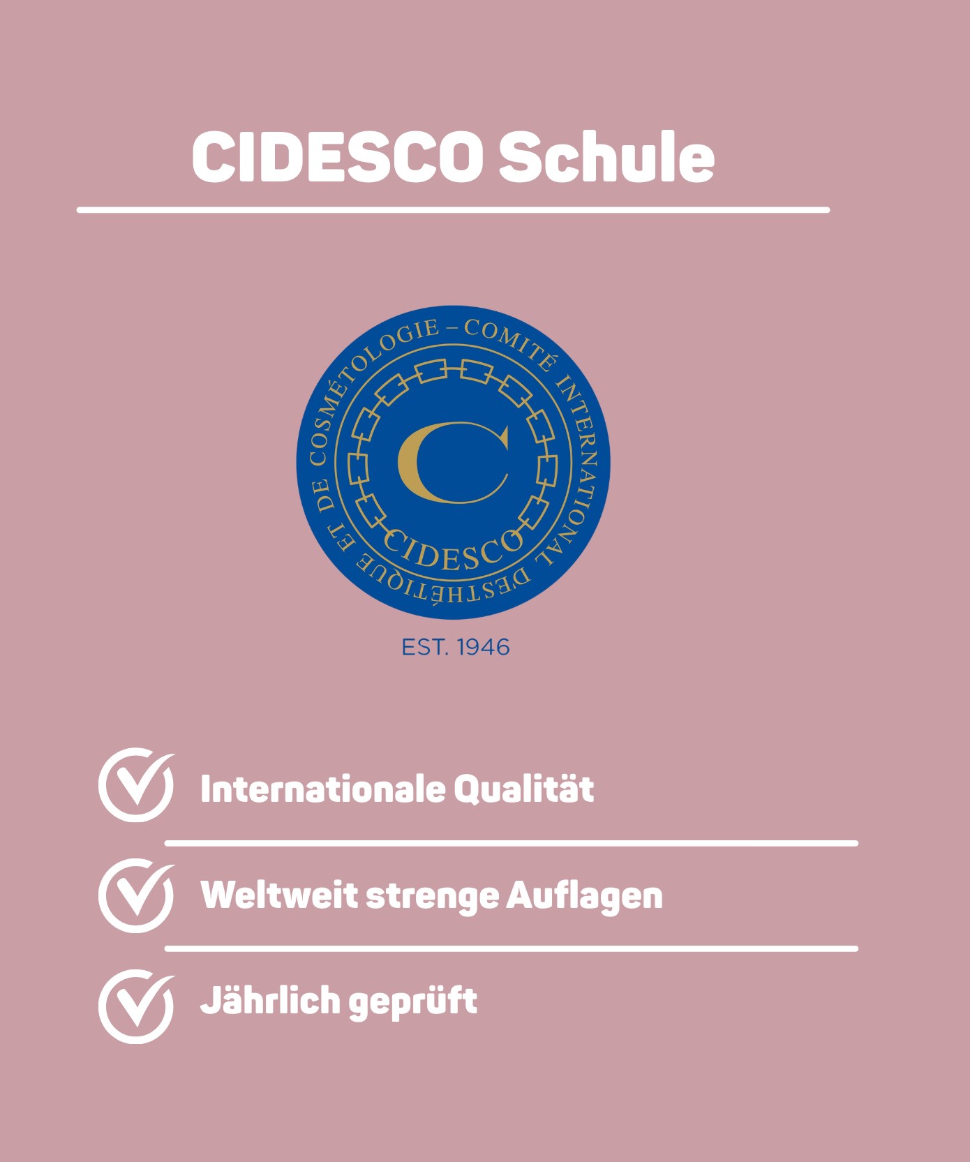 Tolle Räumlichkeiten. Top ausgebildete Lehrer. Unterricht mit Top Marken und Geräten. Auch immer wieder Schulungen von unterschiedlichen Herstellern damit sich die Schüler ein objektives Bild machen können. Wer eine hochwertige Ausbildung anstrebt und sich später vom Wettbewerb durch Kompetenz und Fachwissen abgrenzen möchte ist hier genau richtig! Und ganz wichtig: Herzlichkeit, Offenheit und eine gute Atmosphäre in der das Lernen Spaß macht! Wer möchte kann nach seiner Ausbildung sogar noch das internationale CIDESCO Kosmetikdiplom erwerben oder sogar den Kosmetikmeisterkurs absolvieren. Die Möglichkeiten sind unendlich ;-)