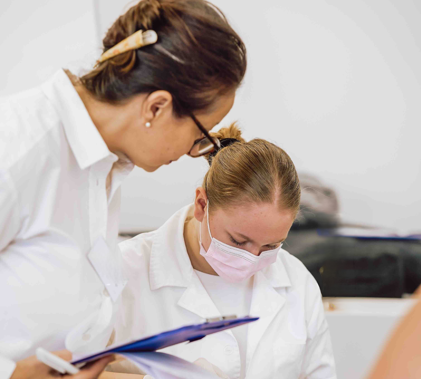 “Wir” sind die Schulleiterinnen Angelika Baur-Schermbach und Katharina Baur - und wir stehen seit über 30 Jahren mit Leidenschaft und Fachkompetenz hinter der Marke FACE & BODY. Gemeinsam mit Kristina Anna, der jüngsten der vier Töchter und unserer Marketingleitung, bilden wir ein starkes Mutter-Töchter-Team. Unsere unterschiedlichen Perspektiven und Kompetenzen ermöglichen es uns, unseren Studierenden das Beste aus beiden Welten zu bieten: